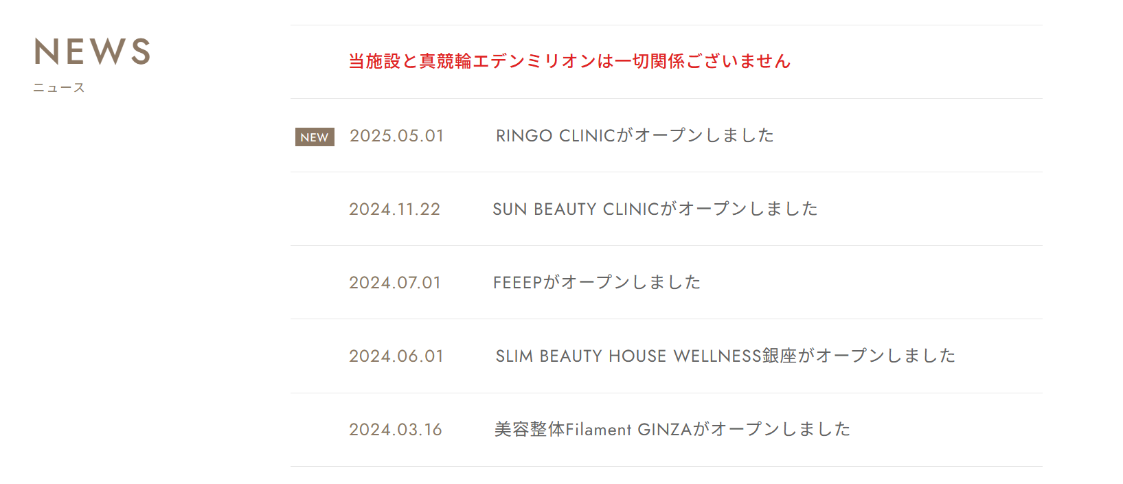 ただ目を引いたのが「GIRAC GINZA(ジラク ギンザ)」のホームページのNEWS欄に「当施設と真競輪エデンミリオンは一切関係ございません」と赤字で大きく表記されてました。